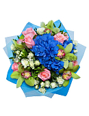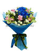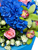 Букет с орхидеей, розами и гортензией