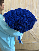 Охапка синих роз в декоративной упаковке
