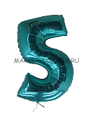 Шар фольгированный с гелием цифра 5 цвет Тиффани
