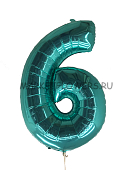 Шар фольгированный с гелием цифра 6 цвет тиффани