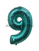 Шар фольгированный с гелием цифра 9 цвет тиффани