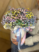 Шляпная коробка с цветной гипсофилой